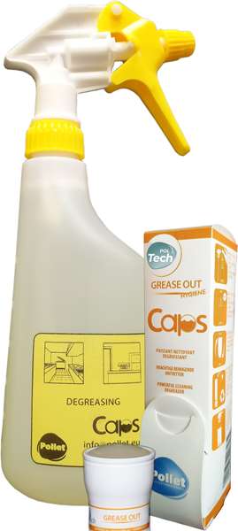 Puissant nettoyant dégraissant toutes surfaces. PolTech Grease Out Caps élimine rapidement les tâches de graisses sans laisser de traces.Kit de 4 sprays + 4 Caps