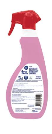 Nettoyant détartrant parfumé, idéal pour l’entretien des surfaces sanitaires : lavabos, baignoires, surfaces carrelées, WC. Laisse une agréable odeur après nettoyage