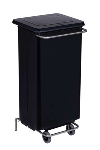 Conteneur mobile 110L noir en acier. Ouverture frontale pour faciliter l'évacuation du sac de déchet.
